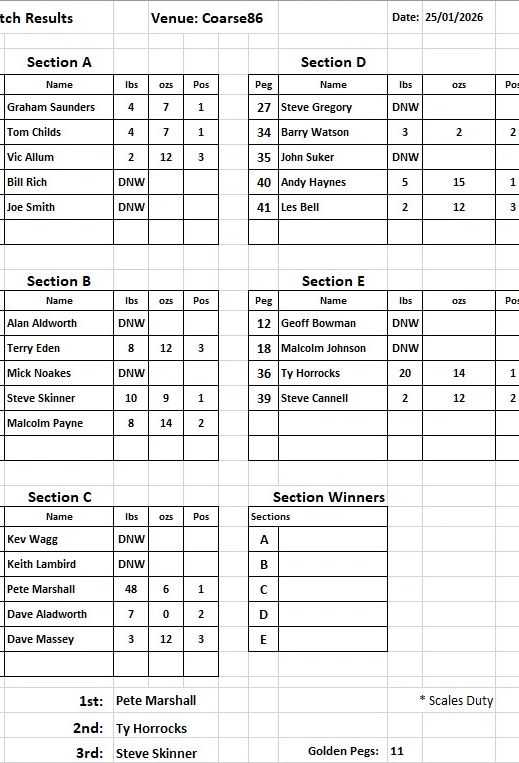 Well done to all that fished and those that helped on the day.