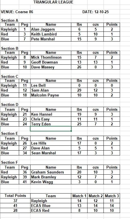 Final match in Tri-series League, ECAS Blue team won on the day and the Series, Well done to all that fished.